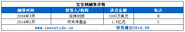 成立于2007年,主打幼儿APP游戏式教育。瞄准的是快速增长的6000万中国上网父母以及由此辐射到的价值540亿美金的孕婴童经济规模。通过为父母提供高质量,多类型的线上及线下服务,宝宝树旨在搭建独一无二的全方位平台,让父母们在这里进行有价值的经验分享,得到愉快的和有意义的育儿及成长体验,同时满足他们多层次、多方面的育儿需求。