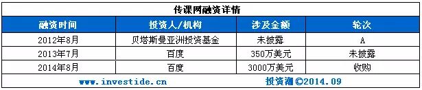 传课网主要针对中小学教育领域,也就是所谓的 K-12 市场,这也是教育培训领域潜在规模最大的市场。百度收购传课网后融入百度现有的度学堂,补充百度在线课程分享平台的内容。