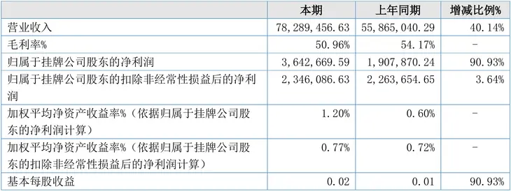 芥末堆文 堆九收到新三板上市公司寰烁股份发布的2021年半年度报告,财报显示:报告期内,寰烁股份营业收入为7828.95万元,同比增长40.14%,归属于挂牌公司股东的净利润为364.27万元,同比增长90.93%。