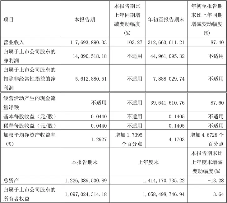 芥末堆11月1日文,堆九收到A股上市公司四通股份发布的2021年第三季度报告,财报显示:报告期内,四通股份营业收入为1.18亿元,同比增长103.27%, 归属于上市公司股东的净利润为1409.05万元,同比增长不适用%。截至报告期末,四通股份总资产12.26亿元。