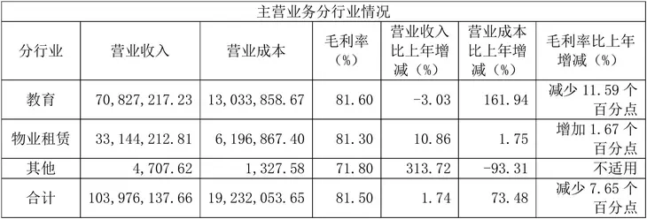 中国高科主营业务包括房地产、教育、仓储物流贸易及投资管理业务,教育业务包括医学领域在线职业教育业务以及高等教育产教融合业务。2021年度,教育业务实现营收7052.72万元,占公司总营业收入的 67.95%;产教融合业务实现营业收入 704.18 万元,同比增长 281.49%。