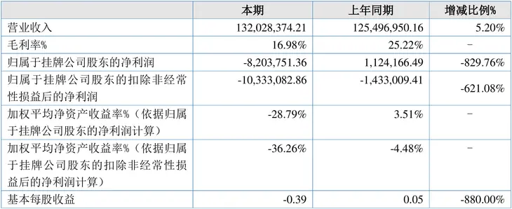 芥末堆文 堆九收到新三板上市公司天英教育发布的2021年年度报告,财报显示:报告期内,天英教育营业收入为1.32亿元,同比增长5.20%,归属于挂牌公司股东的净利润为-820.38万元,同比减少829.76%。