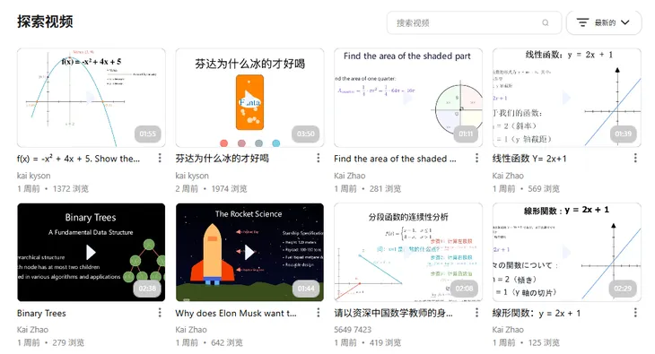 VideoTutor介绍,这些视频的讲解风格类似于可汗学院,通过动画和图表将复杂知识点拆解得通俗易懂,特别适合K12学生和备考人群。