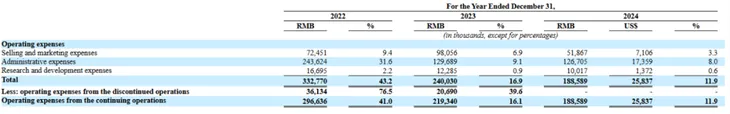 2022年至2024年,优蓝国际的营收成本为5.97亿元、11.65亿元、13.56亿元。销售和营销费用为7245万元、9806万元、5187万元,管理费用为2.44亿元、1.29亿元、1.27亿元,研发费用为1669万元、1229万元、1002万元。
