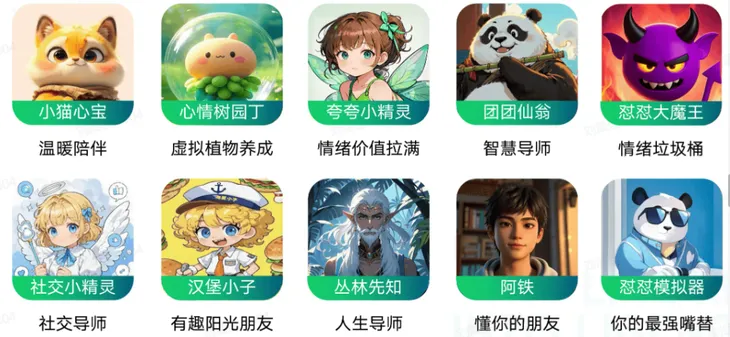此外,AI空间站还有包括小猫心宝、怼怼大魔王在内的数十个智能体,它们扮演不同的角色,覆盖AI情感陪伴、AI学习助手、AI趣味互动三大主题,全方位为学生提供心灵的陪伴和疗愈,守护心理健康。