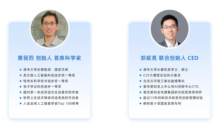 团队基因决定一家企业的未来走向,聆心智能自成立之初就带着浓烈的技术底色。其孵化于清华大学交互式人工智能课题组,团队由国家杰出青年科学基金获得者、清华大学计算机科学与技术系的黄民烈教授领衔。该团队自2020年起就开始专注于情感大模型的自主研发,发布了第一个符合中国群体的心理大模型。要知道在当时,大模型对于大多数人来说还是个陌生的概念。