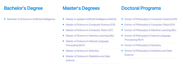 MBZUAI本硕博专业设置