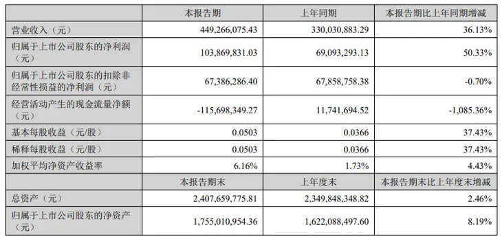 报告显示,豆神教育实现营业总收入4.49亿元,同比增加36.13%;归属于上市公司股东的净利润1.04亿元,同比增长50.33%;归属于上市公司股东的扣除非经常性损益的净利润6739万元,同比下降0.70%;经营活动产生的现金流量净额为-1.16亿元,同比下降1085.36%。