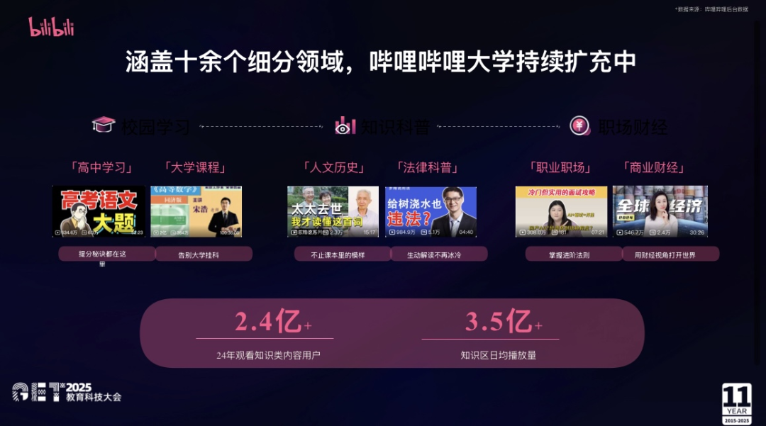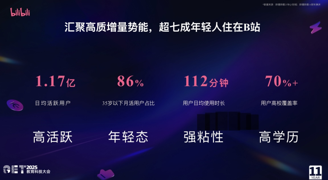 图源:哔哩哔哩营销中心教育行业负责人在2025GET教育科技大会演讲