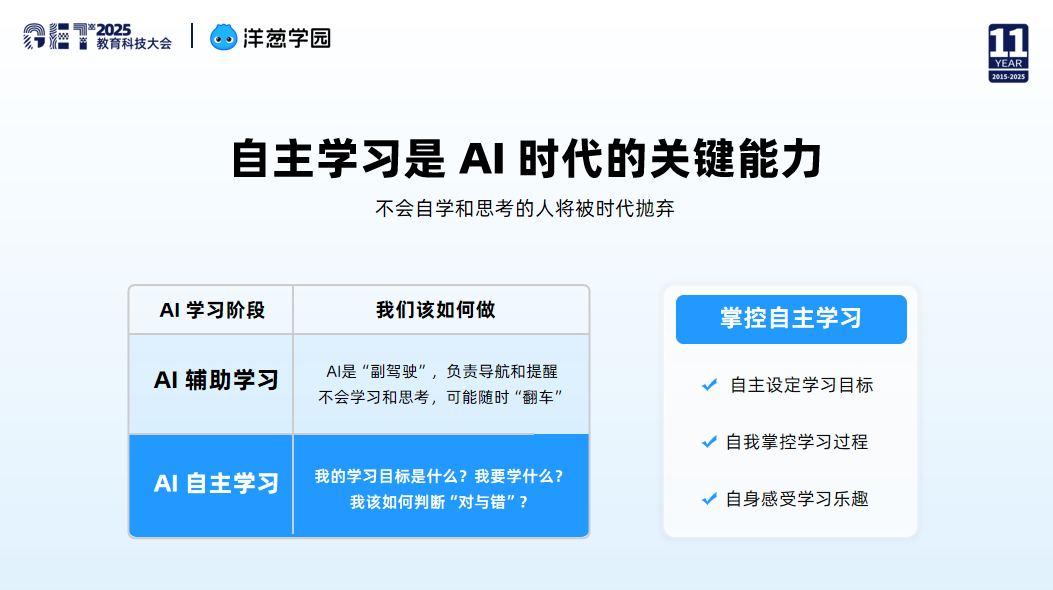 这就是我们未来十年要专注的方向:深耕AI,赋能自主学习,用AI助力每一个孩子成为面向未来的自主学习者。