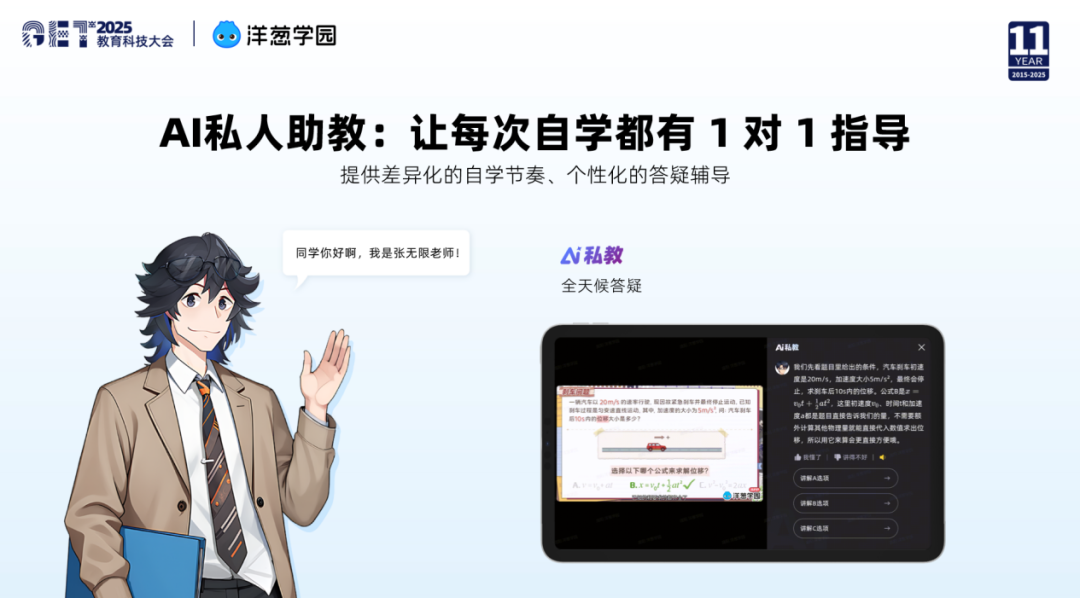 杨临风认为,AI教育正从“AI辅助学习”阶段,迈向以“能力培养”为核心的“AI自主学习”阶段,洋葱学园推出的基于多智能体协同架构的升级版AI智能学伴,全面聚焦学生自主学习能力的培养,真正帮助学生建立起持续学习、主动思考的内在动力。