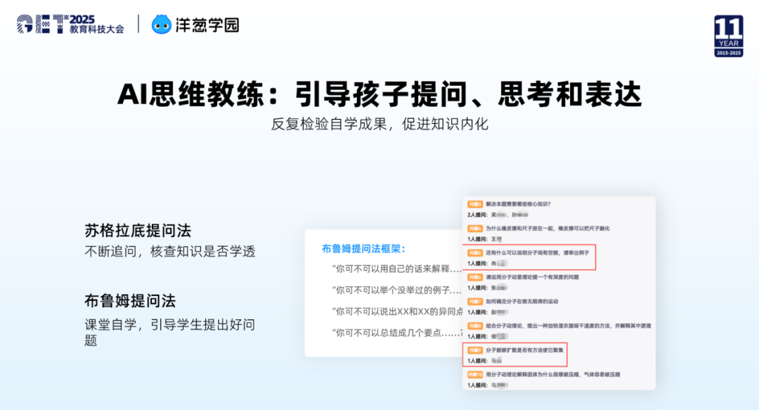 在这一过程中,AI可以持续与学生互动,解决个性化问题,激励他们提出更好的问题。当然,教师的角色始终不可替代。在洋葱学园的理念中,教师的作用将愈发重要。我们致力于帮助教师从单纯的知识传授者,转型为课堂的导演、任务的设计者与环节的把控者,为学生营造更优质的探索与成长环境。