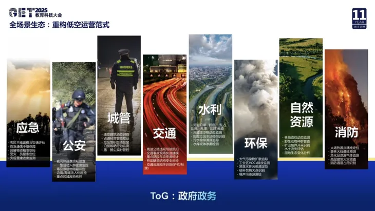 因此在低空经济中,我们看到的机会远不止飞行、制造和基建。在政务领域,无论是应急、交通、城管、水利、环保还是消防,都能看到低空经济的应用。例如,它可以帮助排查水库污染和渗漏,监测水土流失,辅助森林防火和自然资源保护。