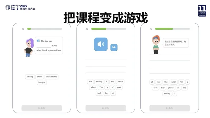 在AI出现之前,这是很难做到的。你不可能为100个孩子、1000个孩子逐一定制内容。但今天,算法可以做到:实时监测用户水平,让课程内容永远比当前水平高一点点,这就是把刷课程的效果,变成刷抖音一样的上瘾体验。