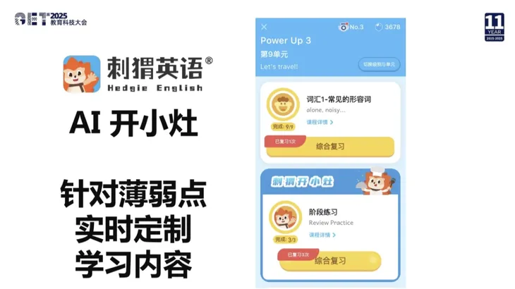11月17至18日,芥末堆在北京举办以“教育有AI,学习无界”为主题的GET2025教育科技大会。小叶子&刺猬英语创始人叶滨以《AI与游戏化的融合突破:刺猬英语的从零到一之路》为题进行了分享。