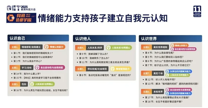 我们现在做的情绪能力课程,解决的是孩子“此时此刻”的问题。AI 的未来离我们还远,它未来会变成什么样、多少年以后会发生什么,其实谁都说不准。孩子的情绪是每天都在发生的。如果我们不去关注,它就会以肢体反应、以崩溃、以沉默的方式呈现出来。