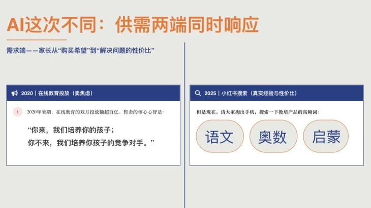 这一次不一样了,最重要的是供需两端都在同时发生变化。我们先从需求端说起,家长的变化。
