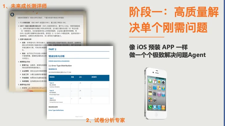 另一个例子是我们的英语测评产品。当这个产品真正呈现在我的电脑屏幕上时,我坚信它已经是国内最好的英语测评工具之一。由于涉及到商业化问题,我不多谈,但我想强调的是,我们能够通过一个Agent,解决具体问题,并将其做到极致。