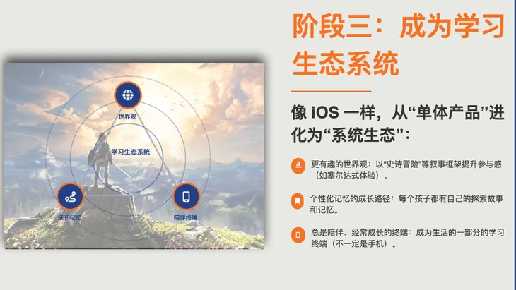 这张图我想表达的观点是:在这个体系中,任何一个三角形,或者两个三角形聚合,都能产生一个千万级别,甚至是过亿级别的用户产品。但当AI教育成为可能的“第三个三角”时,它将带来百倍级别的效应。