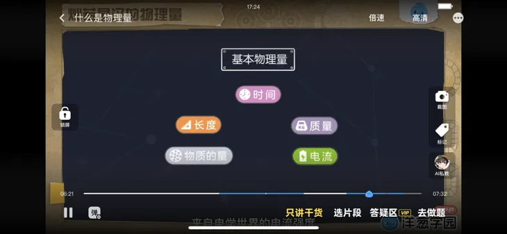 AI私人助教,实时追踪学生思路,精准答疑引导,弥合自学中的“思维断档”,系统创新推出“只讲干货”模式,学生可一键跳转至重难点片段,实现高效精准学习。