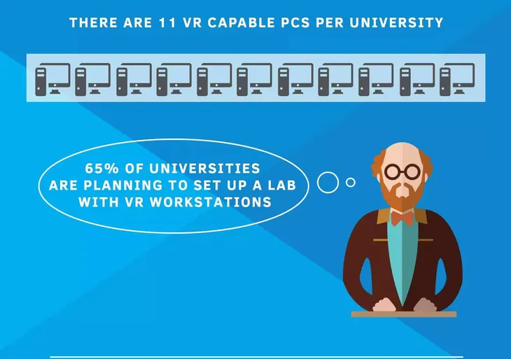 65% 的大学计划设立 VR 的实验室,如今每所大学平均拥有 11 台可支持 VR 设备的计算机