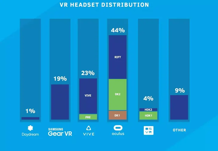 在品牌人气方面,HTC Vive 赢得了 57.8% 的青睐,而 Oculus Rift 为19.8%,Samsung Gear VR 是 7.3%。