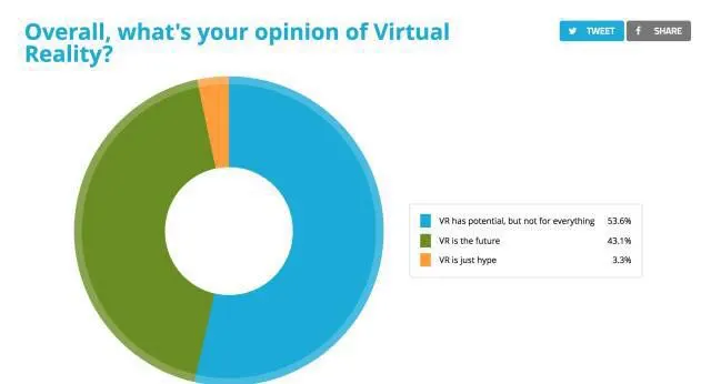 53.6% 的受众认为 VR 很有前景,但不是未来的唯一选项。而 43.1% 的受众认为VR就是未来。