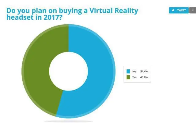 超过 45.6% 的受访者表示计划在 2017 年购买 VR 设备。